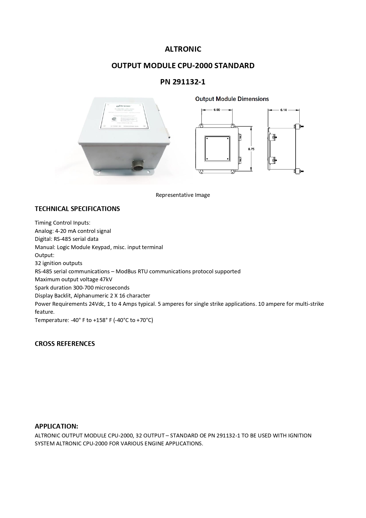 ALTRONIC OUTPUT MODULE CPU-2000, 32 OUTPUT – STANDARD OE PN 291132-1 TO BE USED WITH IGNITION SYSTEM ALTRONIC CPU-2000 FOR VARIOUS ENGINE APPLICATIONS.
