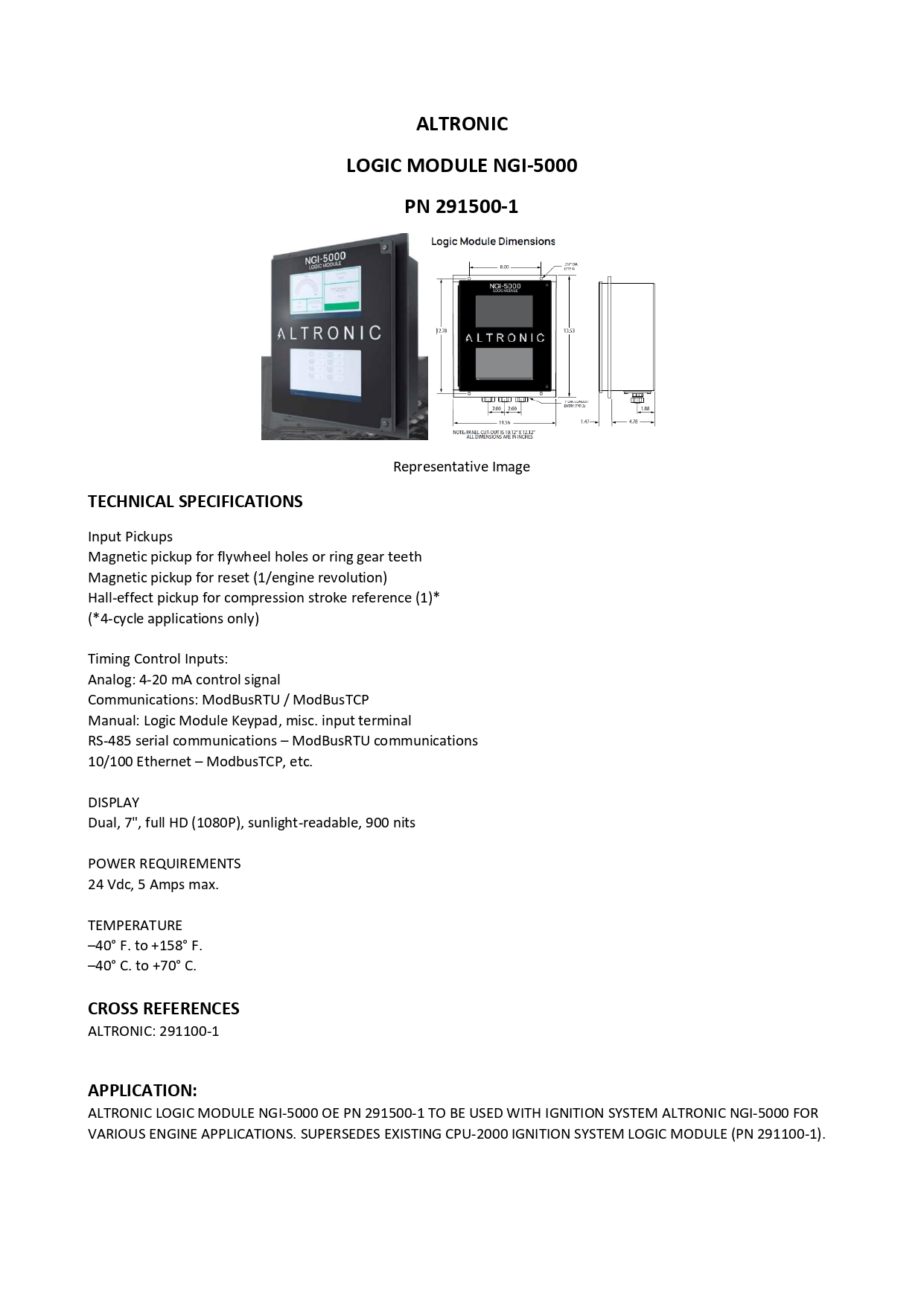 ALTRONIC LOGIC MODULE NGI-5000 OE PN 291500-1 TO BE USED WITH IGNITION SYSTEM ALTRONIC NGI-5000 FOR VARIOUS ENGINE APPLICATIONS. REPLACEMENT FOR 291100-1.