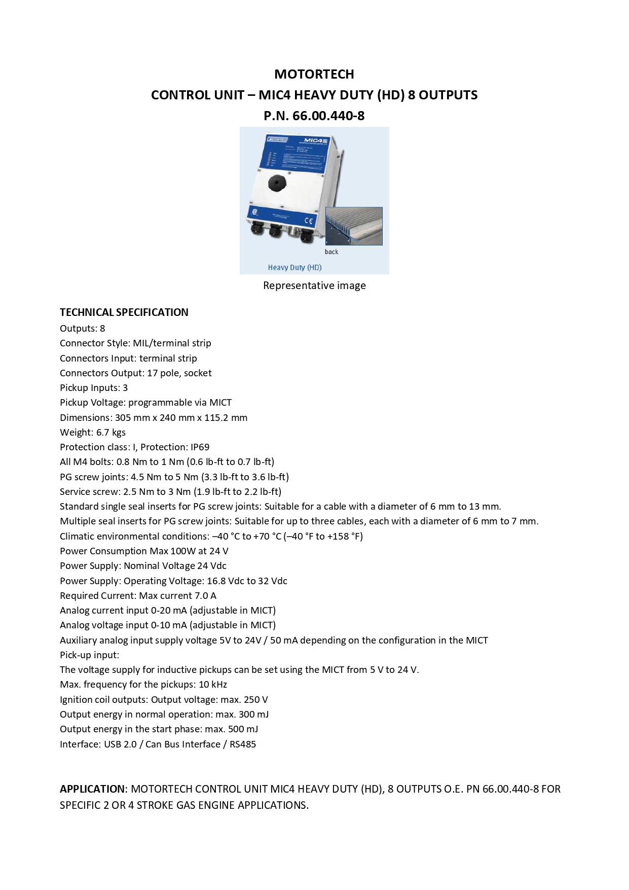 MOTORTECH CONTROL UNIT MIC4 HEAVY DUTY (HD), 8 OUTPUTS O.E. PN 66.00.440-8 FOR SPECIFIC 2 OR 4 STROKE GAS ENGINE APPLICATIONS.