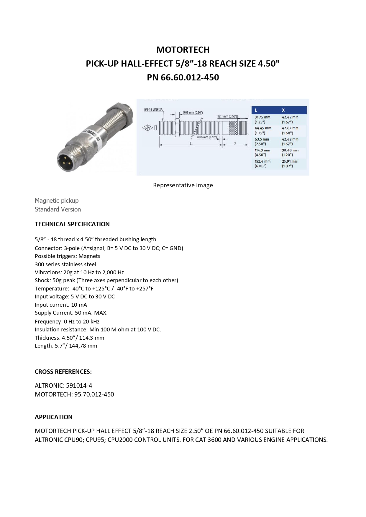 MOTORTECH PICK UP HALL-EFFECT 5/8-18×4,50” OE.PN 66.60.012-450 FOR ALTRONIC CPU90, CPU95, CPU2000 IGNITION UNITS. FOR CAT 3600 AND VARIOUS ENGINE APPLICATIONS.