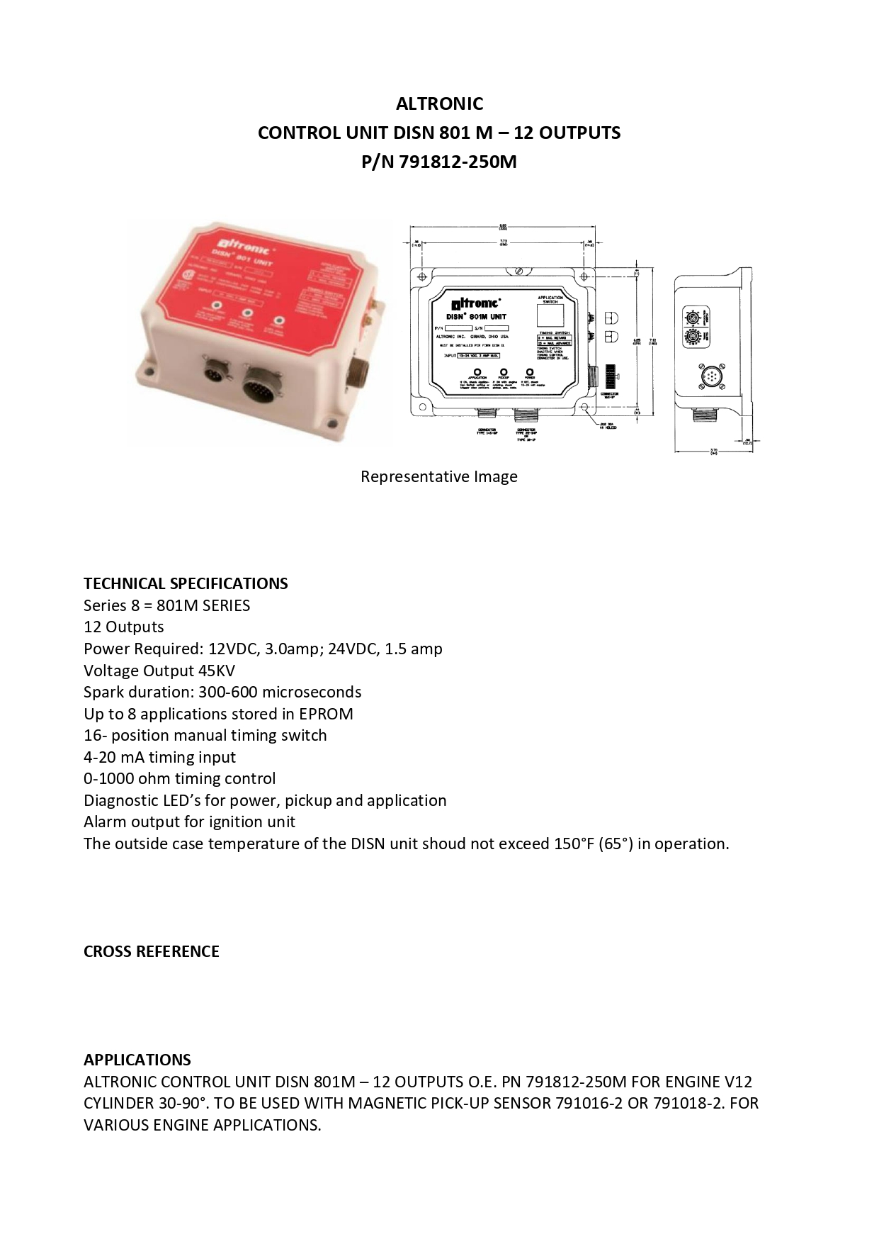 ALTRONIC CONTROL UNIT DISN 801M – 12 OUTPUTS O.E. PN 791812-050M FOR ENGINE 6-12 CYLINDER. TO BE USED WITH MAGNETIC PICK-UP SENSOR 791016-2 OR 791018-2. FOR VARIOUS ENGINE APPLICATIONS.